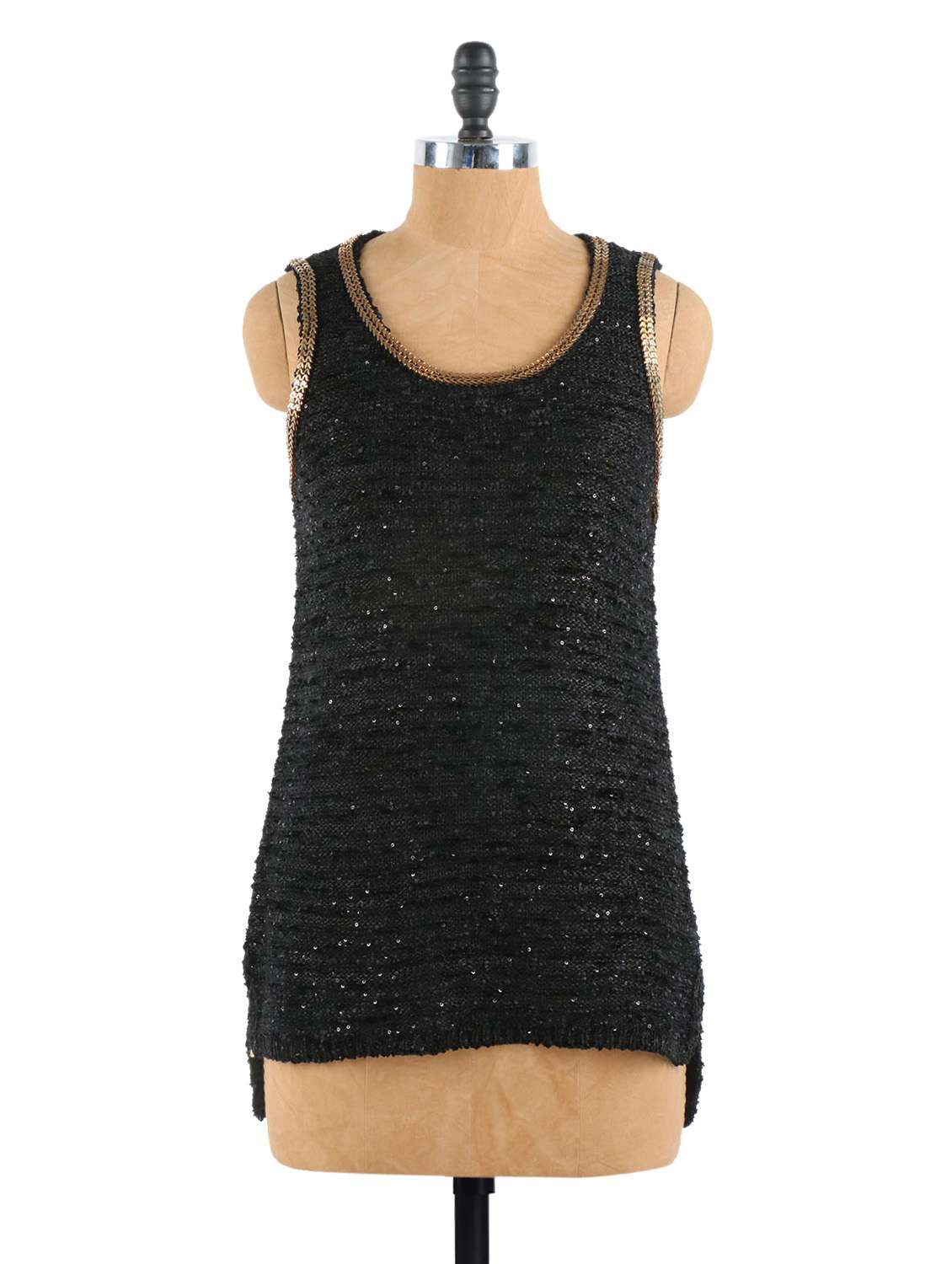 - » Shimmery High-low Black Top with gold detailing