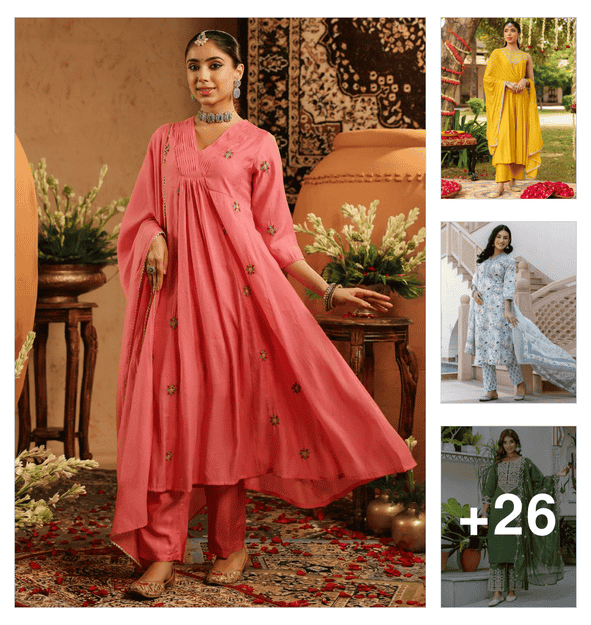 women embroidered three quarter sleeve kurta and pant set