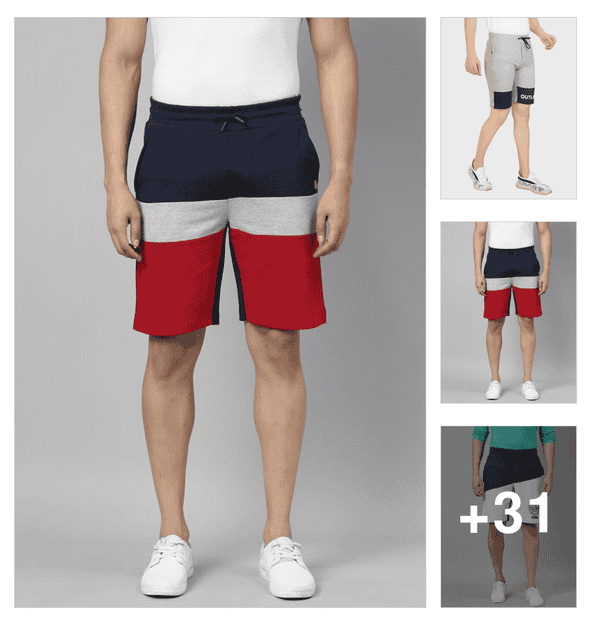 men mid rise color block shorts