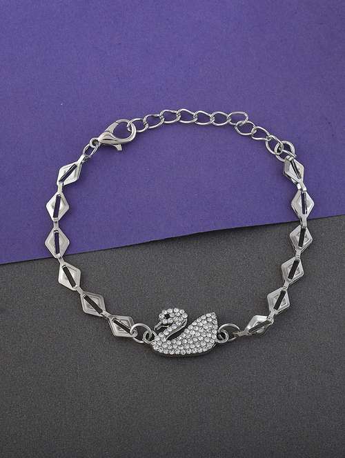 Brass Silver plated CZ Swan Bracelet for Women
