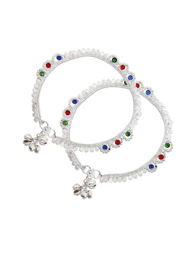 - Decorate your ankle with the great selection of anklets and payals in silver colours crafted with brass materials to make a striking style statement.