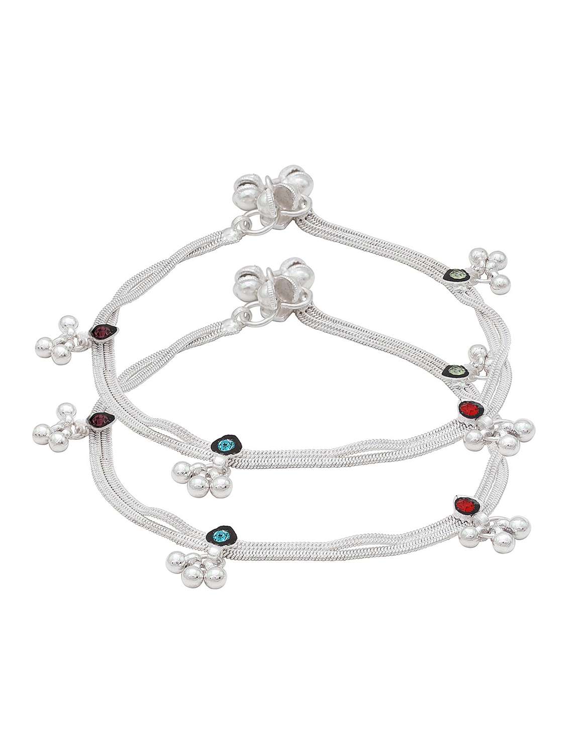 Silver plated Indian traditional double liner colourful Anklet