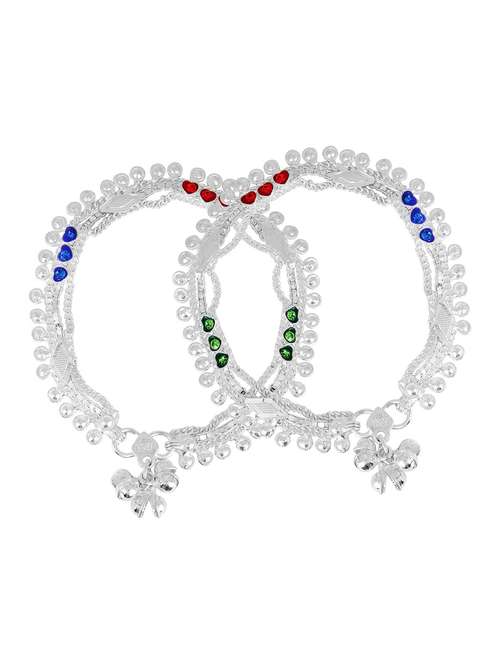 silver plated multi color stoned anklet  - 18533994 - Very Small Image - 1