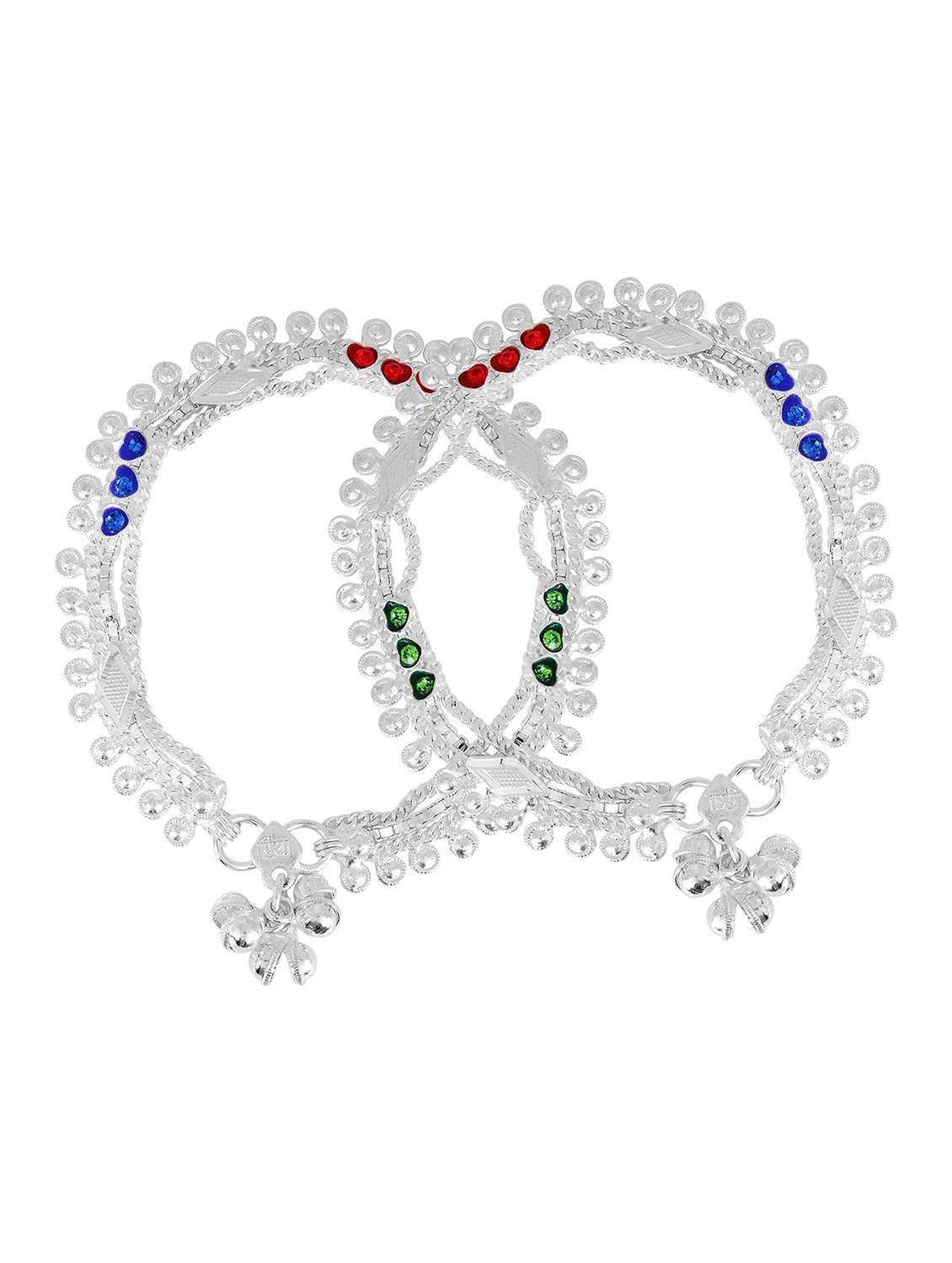silver plated multi color stoned anklet