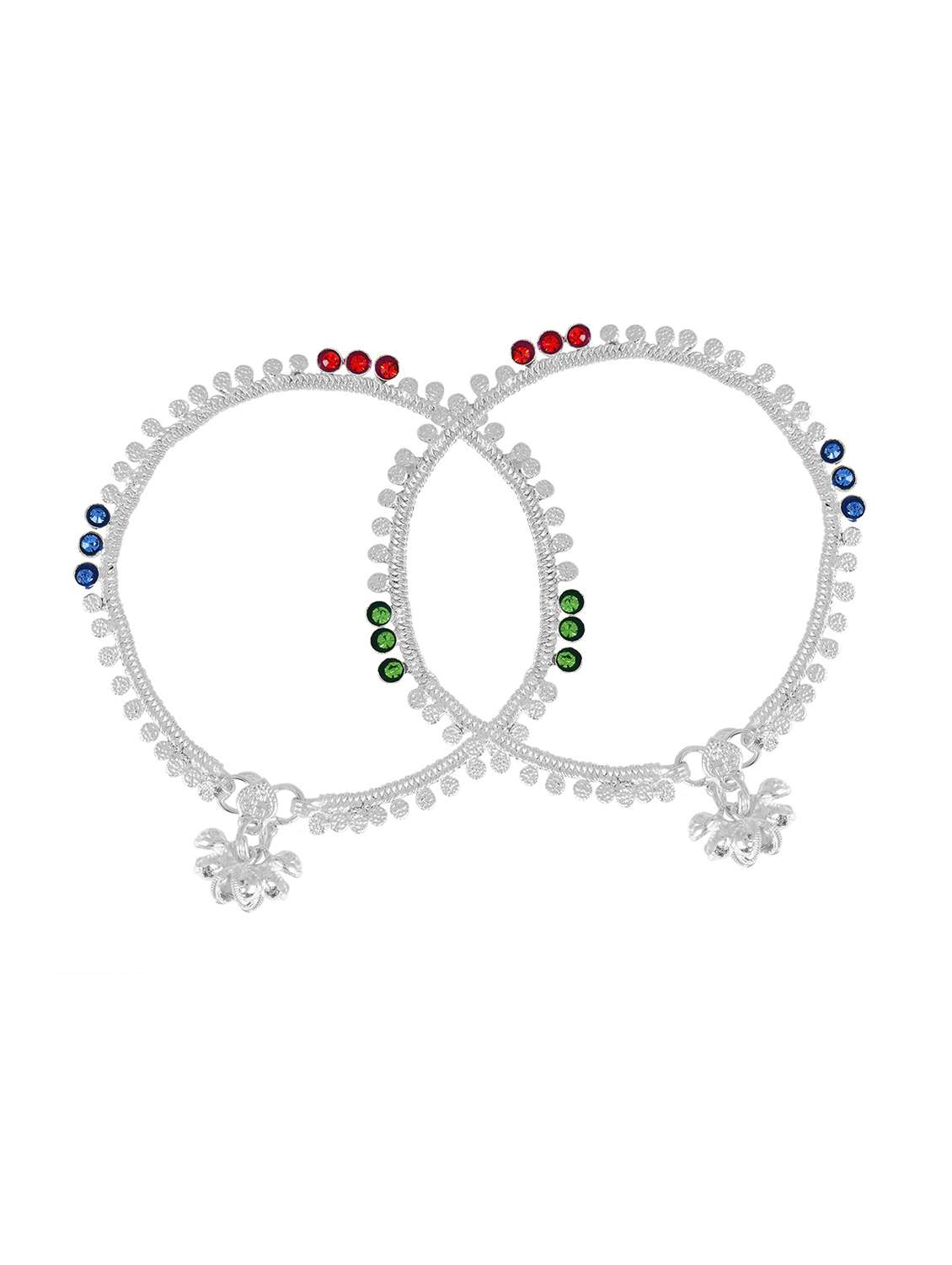 silver plated multi color stoned anklet