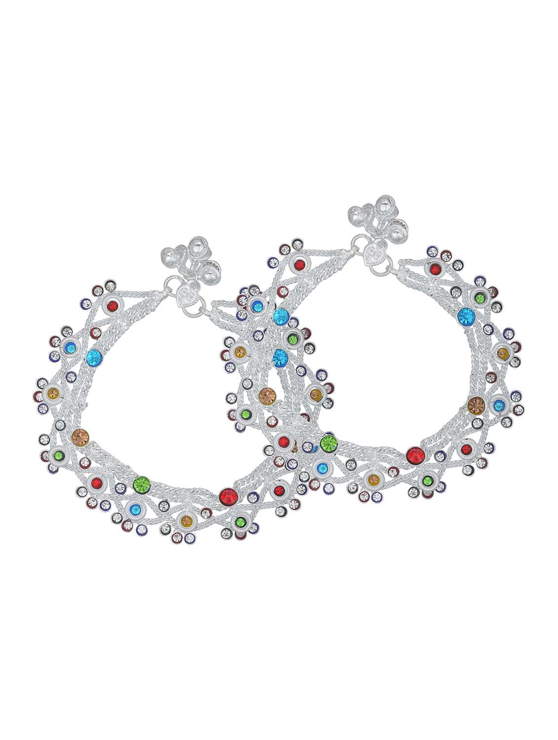 silver plated multi color stoned anklet  - 18534081 - Very Small Image - 1