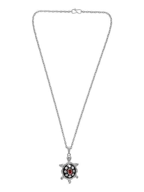 Memoir Silver Plated, Trishul Sheshnag Black Onyx Studded Fashion Spiritual Chain Pendant by Memoir