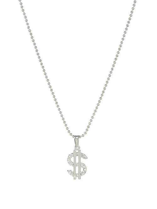 Silver plated CZ studded Dollar design locket chain