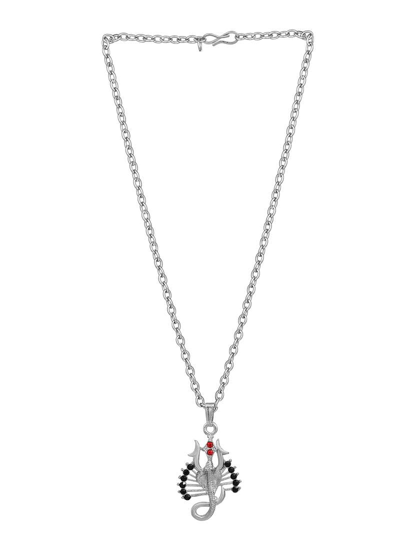 Memoir Silver Plated, Trishul Sheshnag White CZ Studded Fashion Spiritual Chain Pendant by MemoirÂ