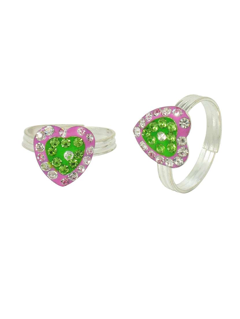 Memoir CZ Pink and Green Meenakari Heartshape Silver plated Adjustable toering for Women