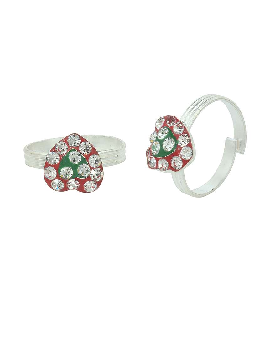 Memoir CZ Red and Green Meenakari Heartshape Silver plated Adjustable toering for Women