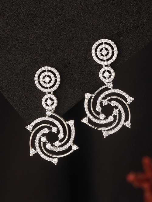 - » silver plated zircon studded quirky luxe dropdown earrings