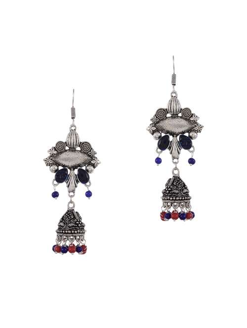 red & blue silver tone oxidized earrings