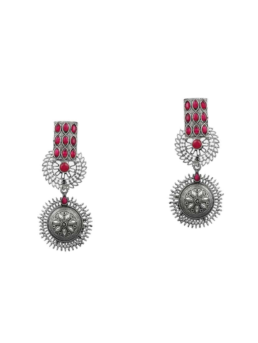 Oxidized Silver Plated Pink Stone Drop Earring