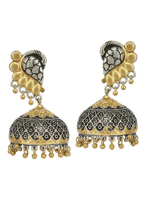 - » dual tone brass oxidised jhumka earring