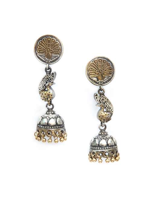 - » peacock design dual tone brass jhumka