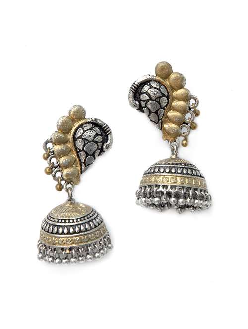 - » peacock with ghungroo pattern dual tone brass earrings