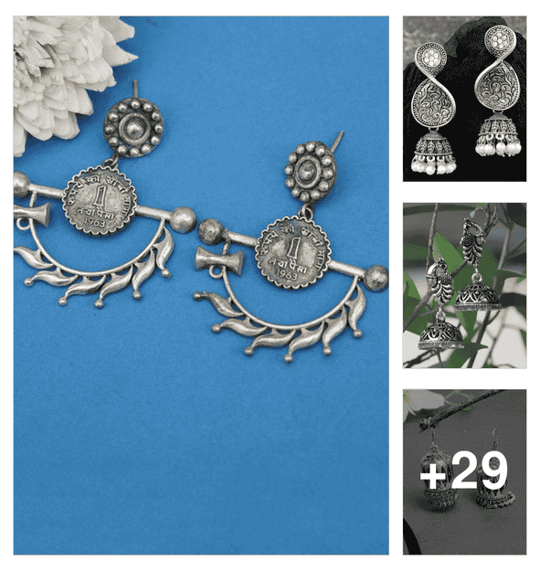 women oxidized drop earrings