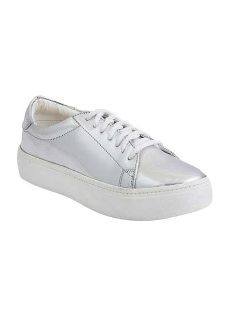 silver faux leather laceup sneakers