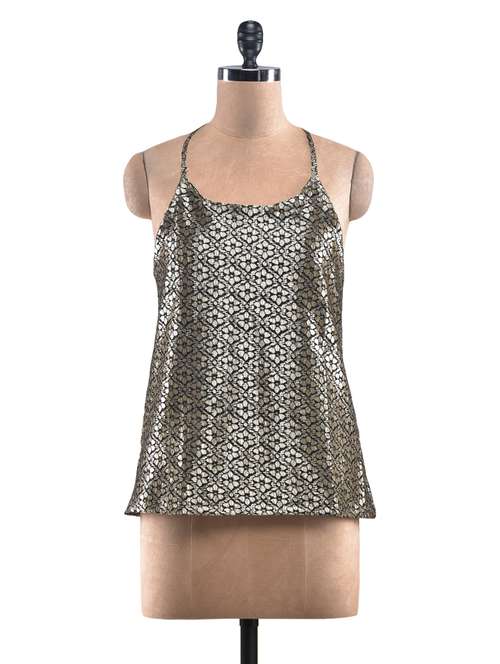 silver floral poly lace top