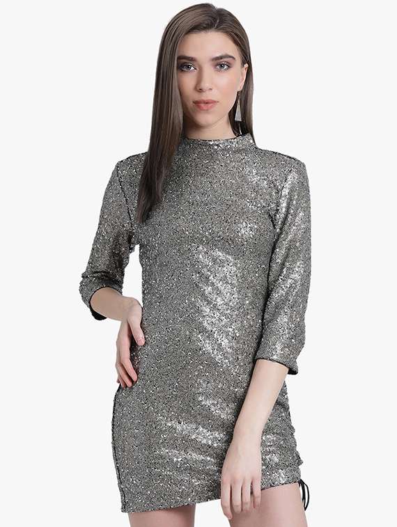 mock neck metallic sheath dress - 16237325 - Very Small Image - 1