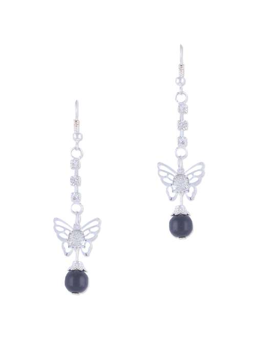 - » silver long butterfly earrings and black beads