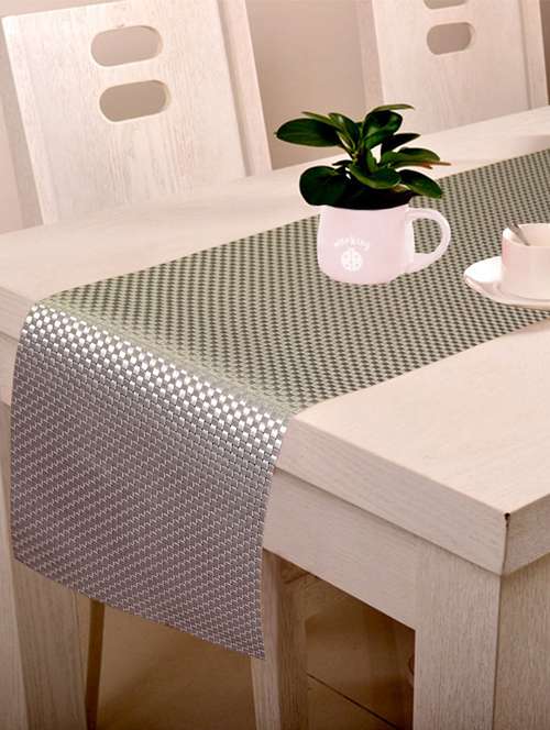 lushomes silver waterproof and heat resistant pvc runner ( 30 x 180 cms, single pc)