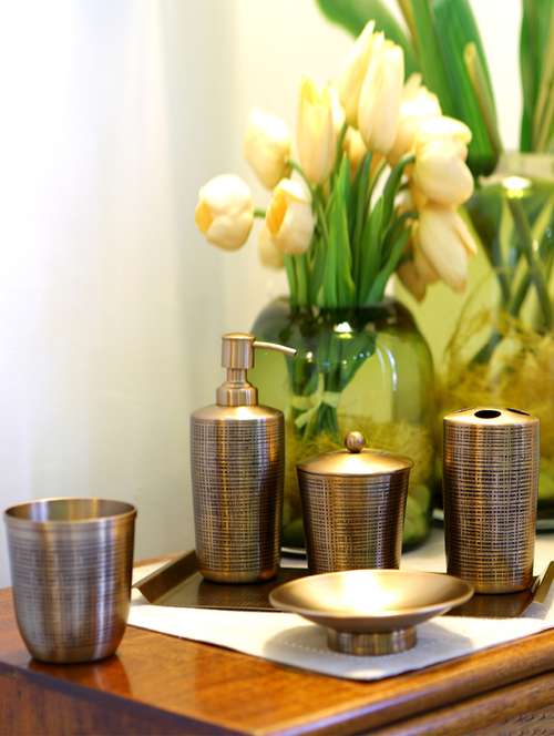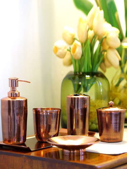 1 Tray, 1 Tumbler, 1 Tumbler with lid, 1 Soap Dish, 1 Toothbrush Holder & 1 Soap Dispenser