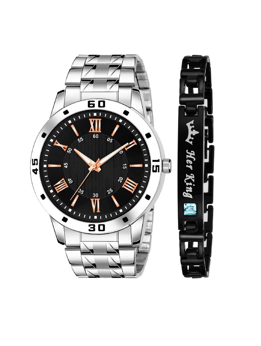 kajaru jew_60_k_20 stylish dial- stainless steel strap watch & black bracelet combo set for men