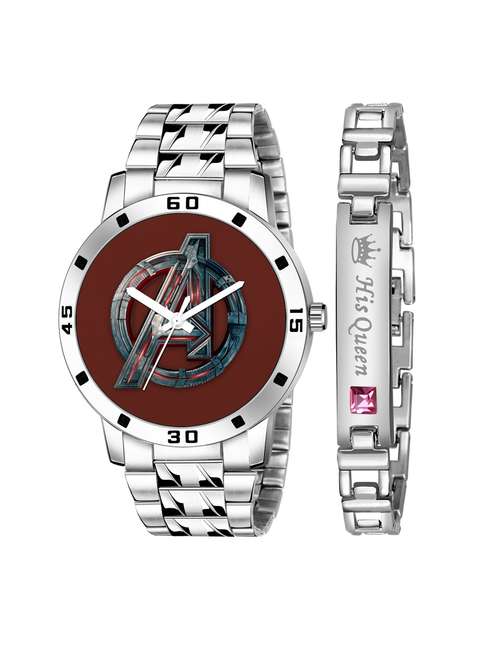 kajaru jew_61_k_13 stylish dial- stainless steel strap watch & silver bracelet combo set for men