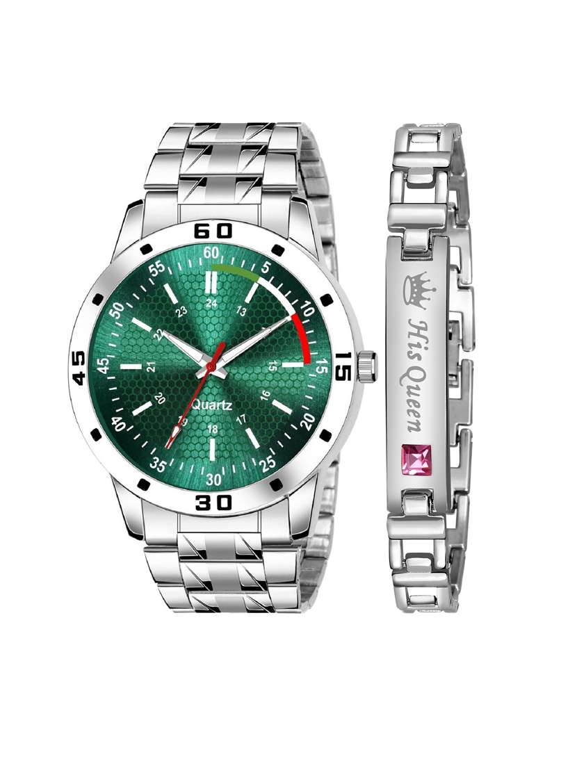 kajaru jew_61_k_25 stylish dial- stainless steel strap watch & silver bracelet combo set for men
