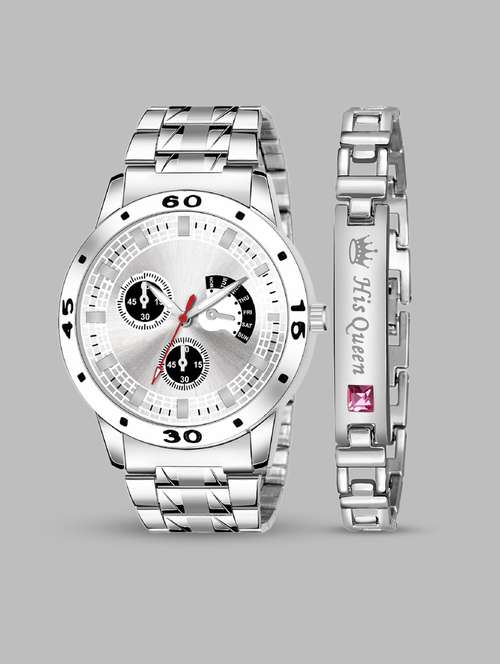 kajaru jew_61_k_55 stylish dial- stainless steel strap watch & silver bracelet combo set for men