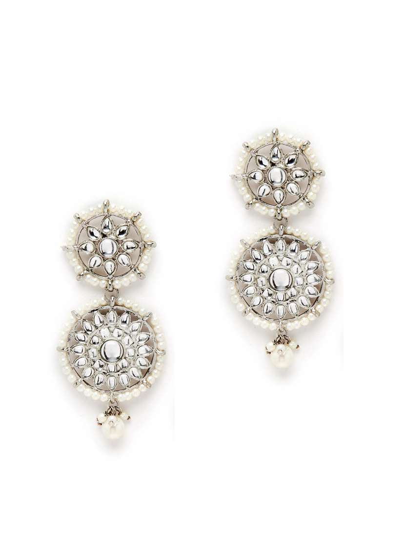 Karatcart Oxidised Silver White Kundan Dangler Earrings for Women