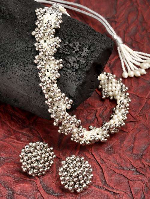 - » karatcart white pearl and silver boll studded choker necklace set