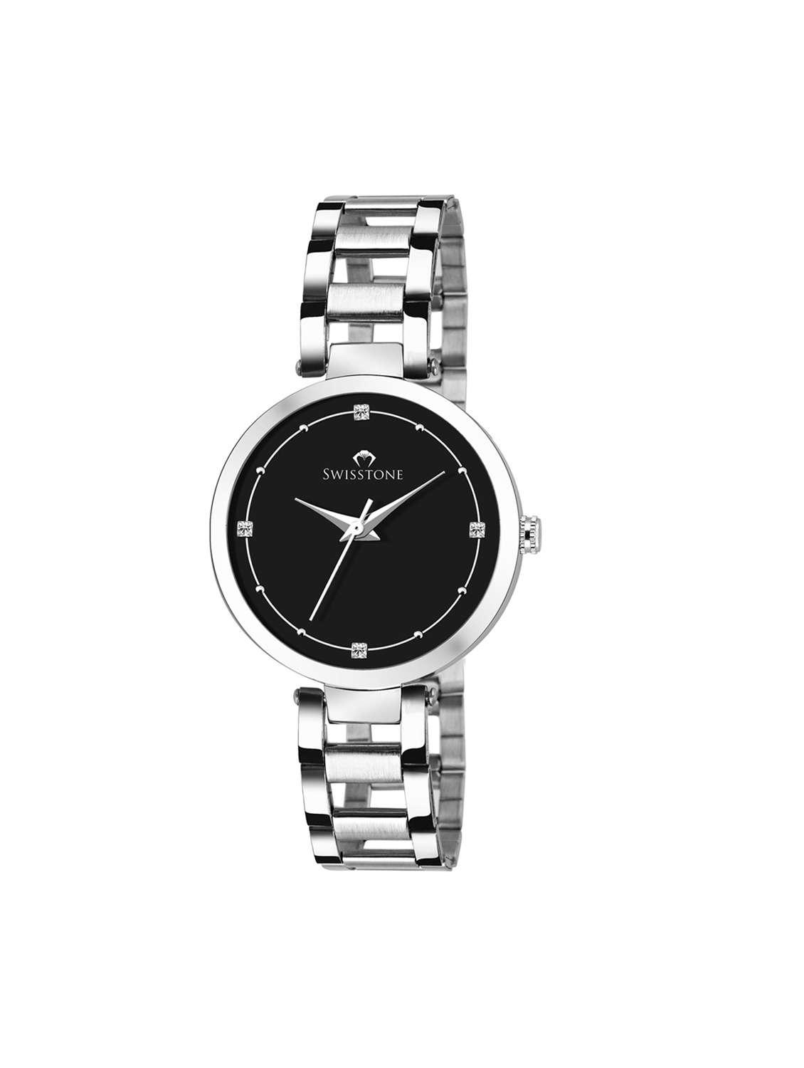 SWISSTONE DZL159-BLK Stainless Steel Chain Wrist Watch for Women