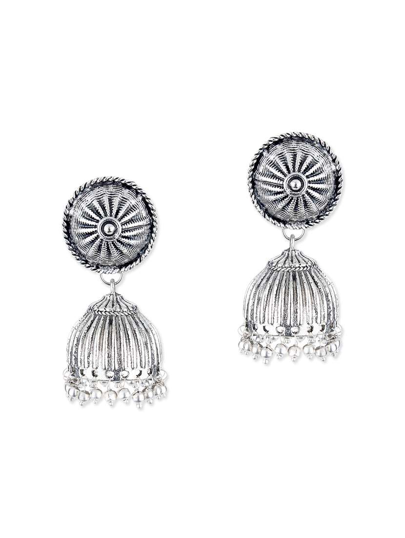 silver metal jhumki earrings - 12160802 - Very Small Image - 1