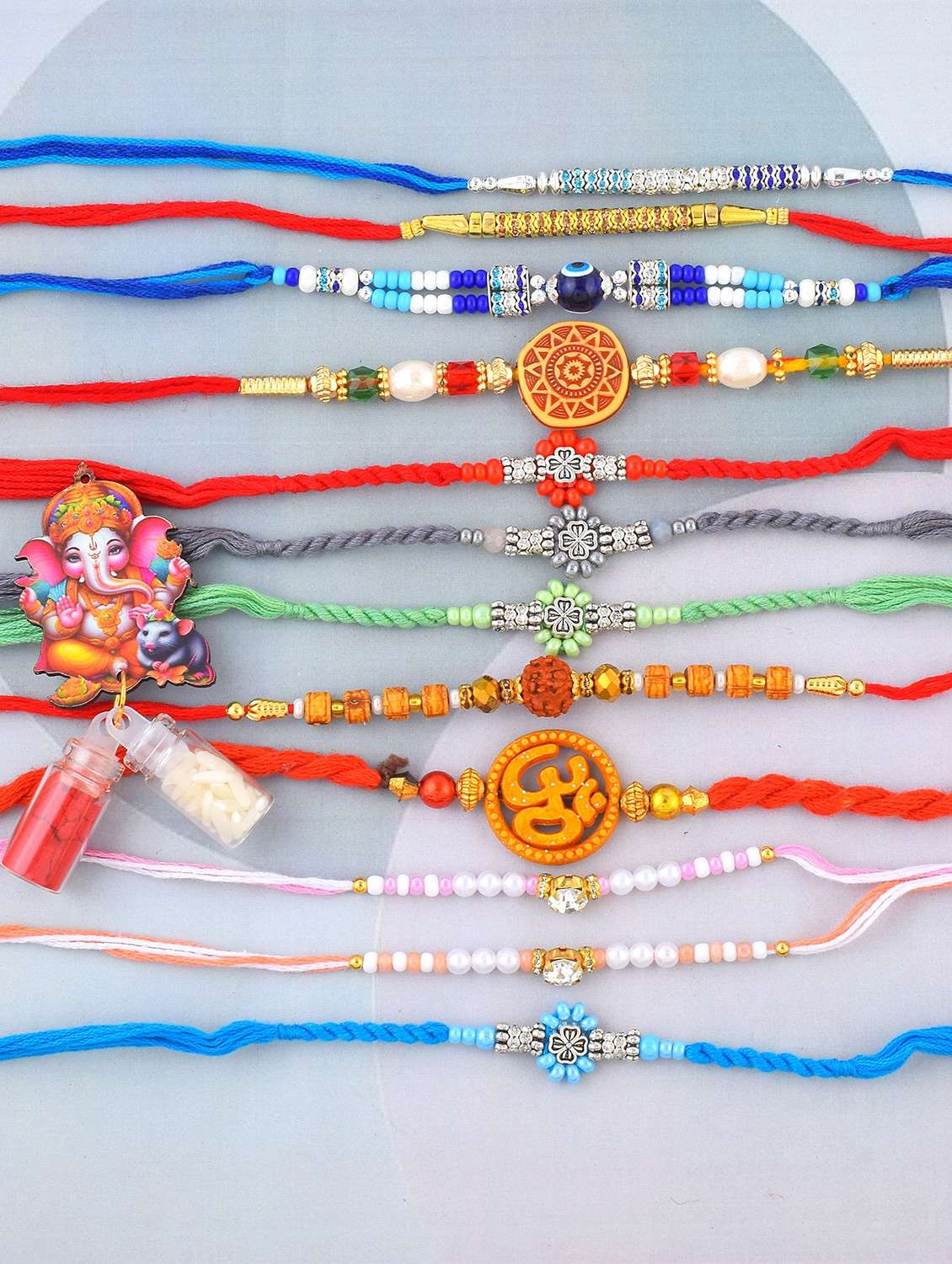 pack of 12 beaded rakhi set with roli and chawal