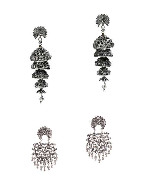 silver plated graceful delightful earrings - combo of 2 pairs