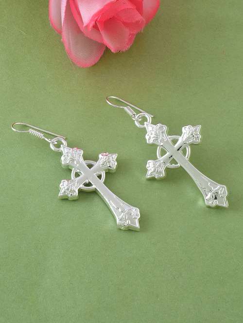 Brass Silver plated Christian Spiritual Crucifix Cross Dangler earrings for Men Women