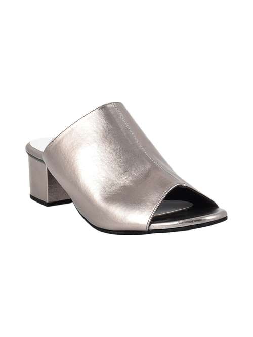 silver pu slip on sandals