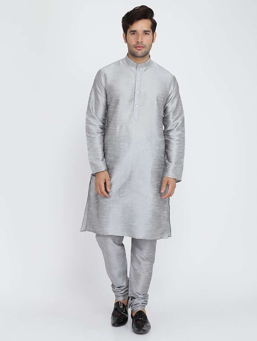 men solid mandarin neck kurta churidar ethnic wear set - 22000484 - Very Small Image - 1