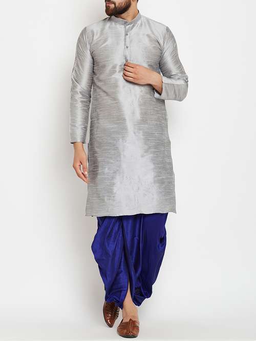 silver silk blend dhoti kurta set - 15085478 - Very Small Image - 1