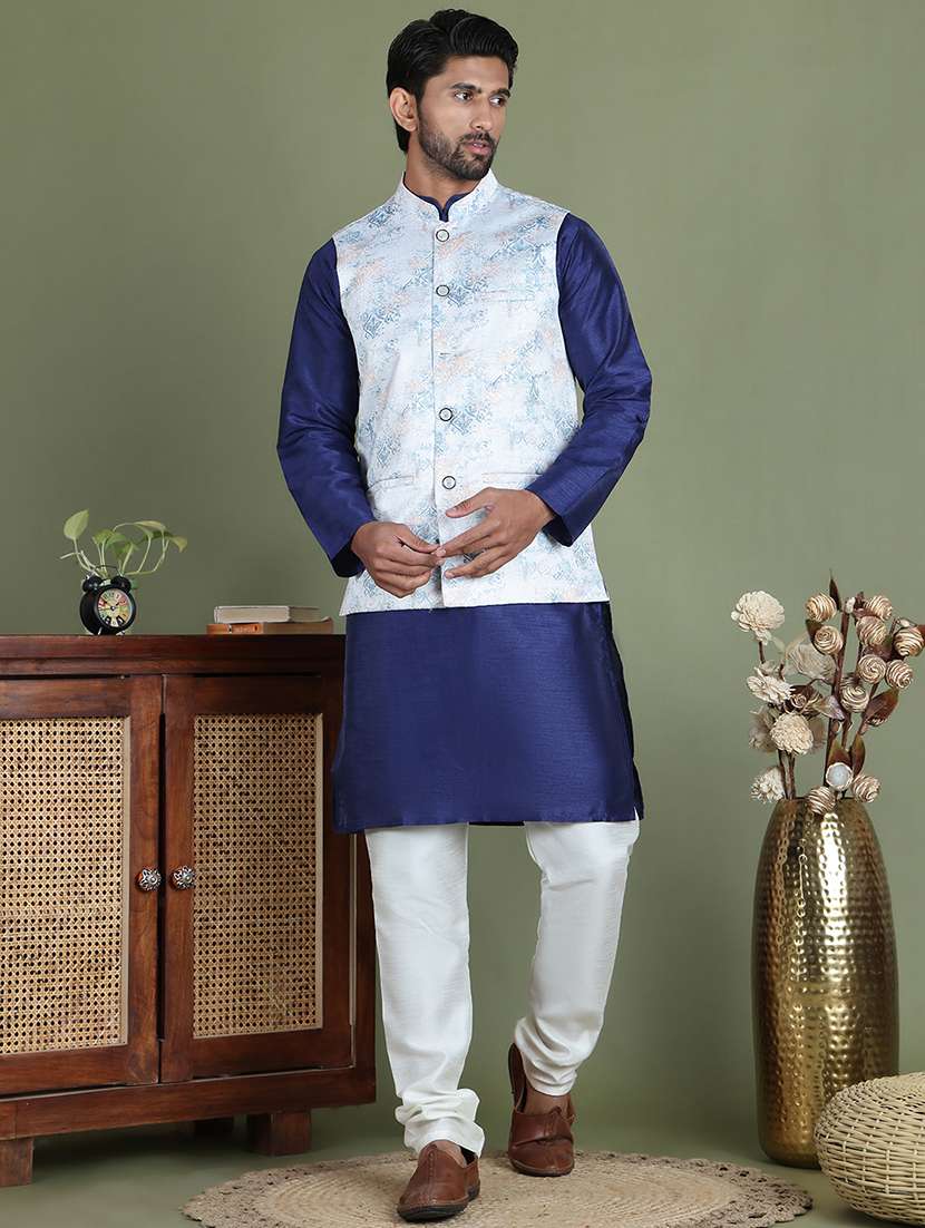 - » men printed kurta pyjama with jacket ethnic wear set