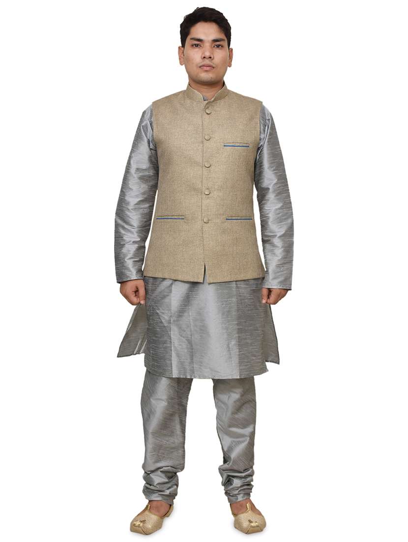 - » silver silk blend kurta pyjama with jacket ethnic wear set