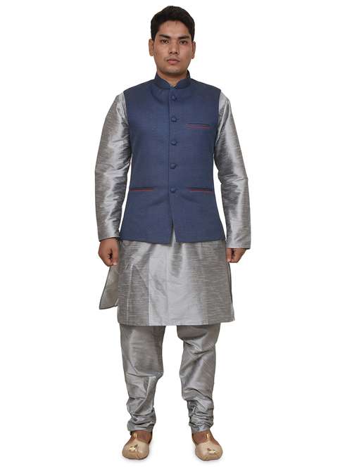 - » silver silk blend kurta pyjama with jacket ethnic wear set
