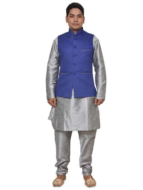 - » silver silk blend kurta pyjama with jacket ethnic wear set