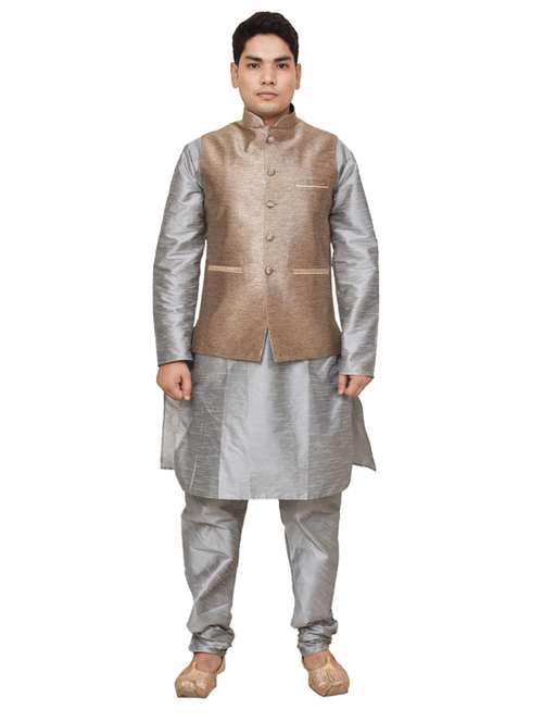 - » silver silk blend kurta pyjama with jacket ethnic wear set