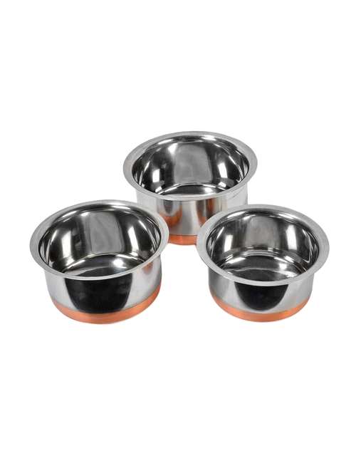 - » brandroot high grade steel patila/handi/ bhagona/tapeli with copper bottom (300ml,500 ml, 750ml) set of 3