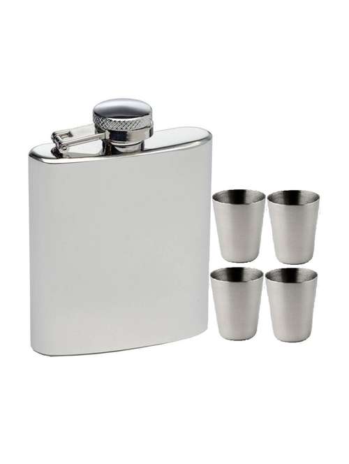 - » dynore hip flask 7 oz with 4 shot glass 5 - piece bar set (stainless steel)
