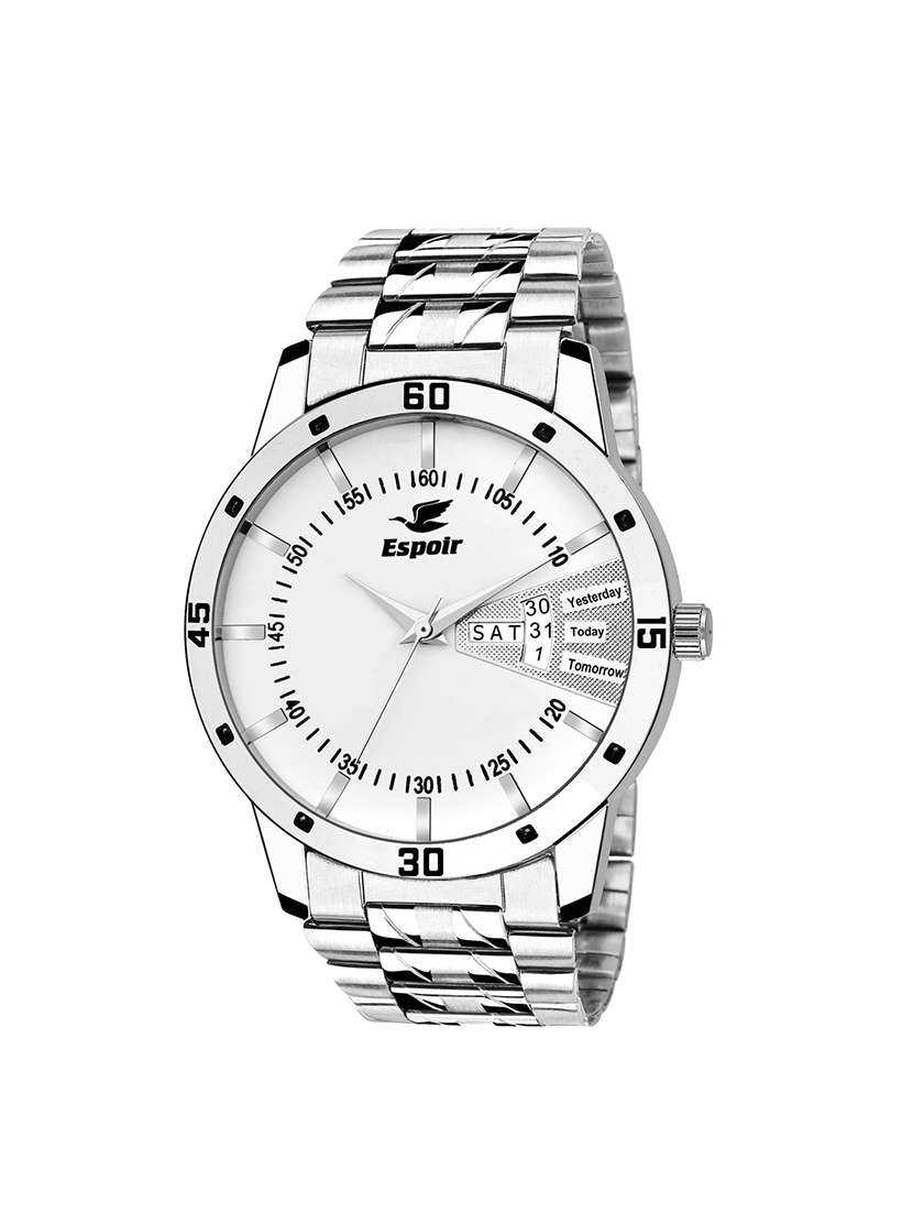 espoir analog white day and date dial men's watch sam-white